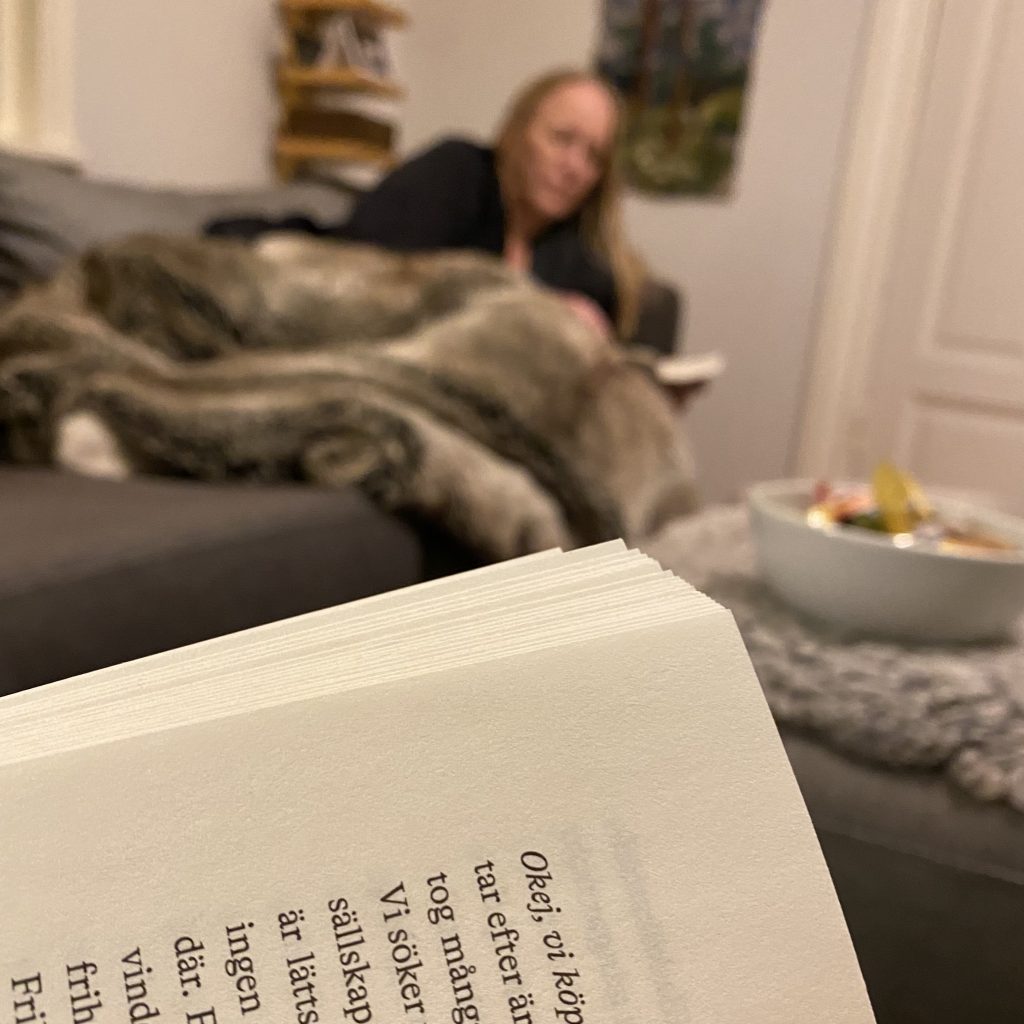 Tillbaka till boken och frågeställningarna den lyfter. Det är viktigt att ha ett lagom distanserat förhållande till vad som pågår i detta nu över hela jorden. Vi kan inte bära hela världens smärta på våra axlar, det är inte något som krävs eller kan förväntas av oss människor. Somliga av oss kommer dock någon gång att behöva förändra livet ganska radikalt för att kunna komma vidare då vi hamnat i en ohållbar vardag, oavsett om det gäller mentalt, själsligt eller rent fysiskt. Bredbergs uppvaknande i samband med World Economic Forum gjorde att hon ”hoppade av hamsterhjulet” i reklambranschen. Jag kan förstå att det var ett enormt hopp för henne och jag hejar på med allt jag har. Varje medmänniska som hittar en bättre livsväg är värd en applåd. Mitt eget hopp var inte lika stort, i mångt och mycket handlade det för mig mer om att söka mig tillbaka till mina rötter. På fars 40-årsplansch från kollegorna stod det något om att han var polisen som egentligen ville vara bonde och alla som kände mamma vet att hon arbetade outtröttligt som obetalad psykolog år ut och år in. Ända in på sin dödsbädd. Jag hamnade helt enkelt på den väg som var den enda rätta för mig – jag blev samtalsterapeut på en gammal gård där vi nu har både höns, växthus och trädgårdsland.