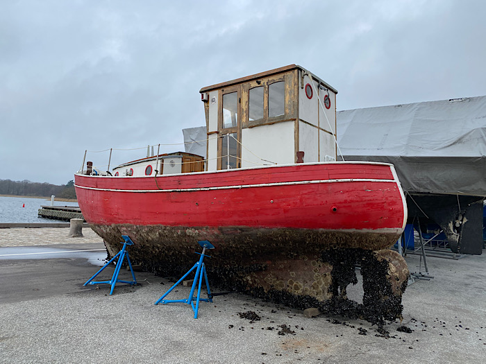 Utflykten gick till Nysted. Trots att molnen hängde tungt och att den råa kylan letade sig in både här och där kunde vi lätt se att detta är en fantastisk plats. Det första som mötte oss nere i hamnen var denna charmiga skorv som inte hade fått någon omsorg på flera år. (Svärsonen är fiskarson och har bra koll på vattenfarkoster.) Tänk ändå hur naturen alltid vinner tillbaka mänsklig påverkan, hur den än ser ut.