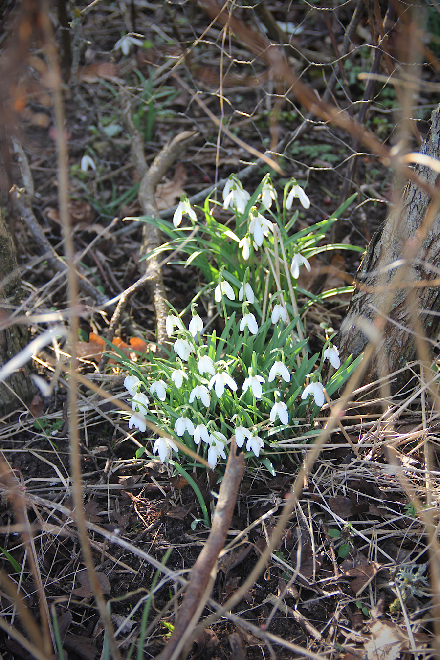 Även om jag har ägnat delar av helgen åt att läsa, lyssna, bingea Ally McBeal och sticka har jag också njutit av vårvärmen. Lådorna i trädgårdslandet är eftersatta, jag orkade inte rensa ut ogräset innan vintern som jag borde ha gjort. Det innebär mer jobb nu så klart och det visste jag. Kvickroten är värst, men det finns också våtarv så det räcker och blir över. Jaja, nu blev det så. På andra ställen kan jag njuta desto mer. Bästa snödroppsbestånden växer i häcken mellan oss och grannarna. De har verkligen börjat ta för sig sedan jag rensade upp ordentligt där för ett par år sedan.