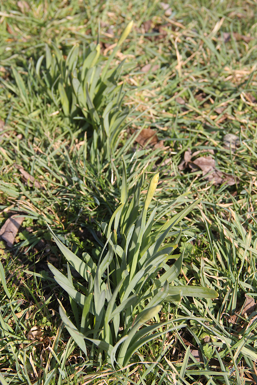 Påskliljorna är på gång! Jag satte lökar runt ett av päronträden första hösten här. Den fina cirkeln är numera bara en halvcirkel, det växer bara på den södra sidan av trädet. Mängderna av krokus jag satte för några år sedan runt det andra päronträdet verkar inte trivas alls, eller så är de bara sega. Sötnosarna längst uppe i inlägget är nämligen de enda som kommit upp hittills. Runt Ingrid Marie-trädet växer fritillaria så det stänker, men det är för tidigt för dem än.