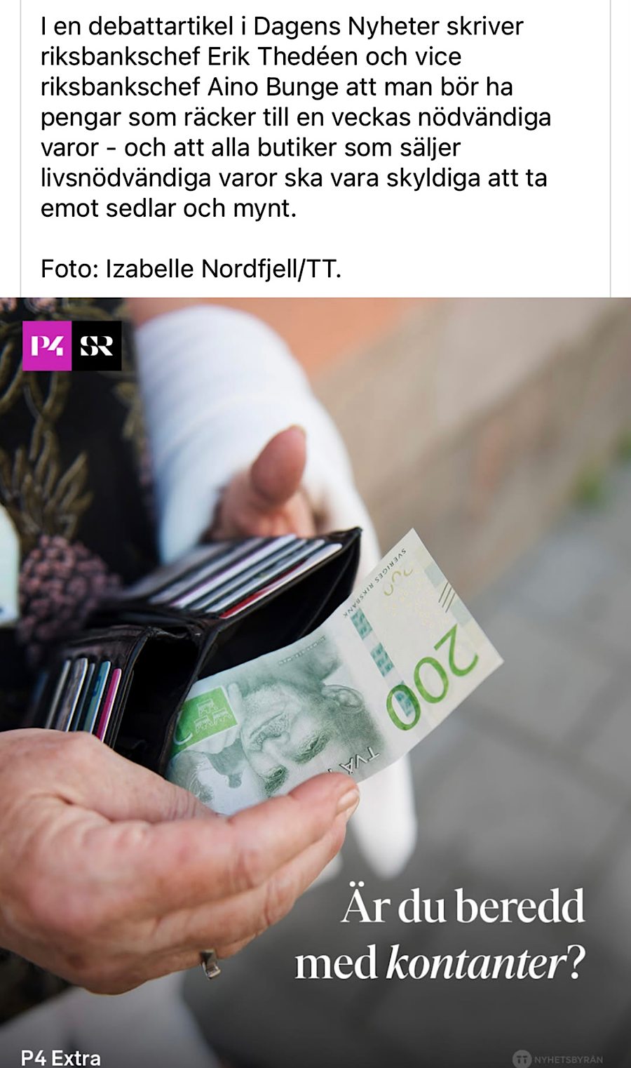 Jag försöker leva som jag lär. Odlar, ser till att jobba på min och mina medmänniskors resiliens (mental stabilitet), förkovrar mig, ser till att inte knarka nyheter för att inte brytas ner av all skit som presenteras från olika håll och jobbar på att omfamna det faktum att jag naturligt är pessimist och därmed har ett stort ansvar att hantera detta. Vet att jag blir extremt effektiv när någon får en stroke, då jag är med i en olycka, när jag eller någon närstående drabbas av mer än svåra utmaningar. (Detta är sådant jag varit med om.) Jag vet också att jag kraschar efteråt, så jag har ansvaret att inte hålla mig nära botten på brunnen och se till att med jämna mellanrum kontrollera att det finns stegar att klättra upp på. Efter att ha gjort snart hela det svenska samhället kontantlöst kräver nu Riksbankens chefer att butiker med livsnödvändigheter måste ta emot kontanter och att alla behöver se till att ha kontanter hemma. Med tanke på hur många ungdomar som väl knappt sett en sedel eller ett mynt och lever i ständig skuld i Klarna country kanske det är dags för ett nytt ämne i skolan? ”Beredskap och resiliens” skulle det kunna heta. Varsågod för tipset, Skolverket. Till dig som läser här önskar jag en härlig dag. Livet är underbart! Också. ❤️