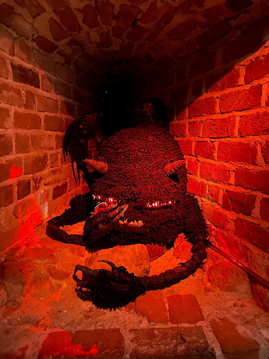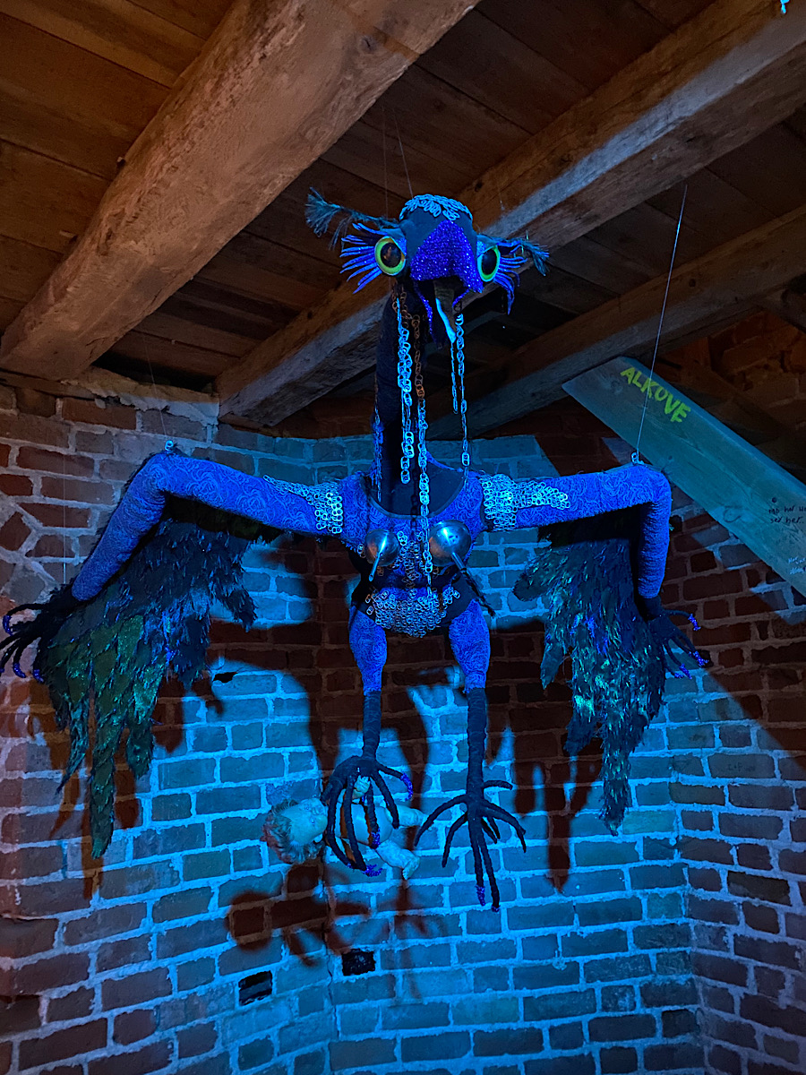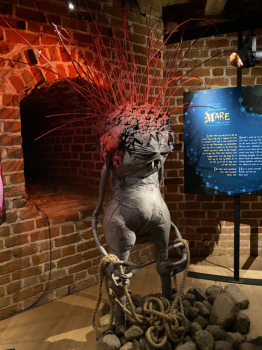 Hela vägen upp i tornet bjöds det på en monsterkavalkad. Så roligt att läsa om de olika monstren och att betrakta hantverket bakom. Jag sa till dottern att hon hade varit livrädd för att gå där då hon var liten och allt var läskigt. Vi såg dock några gossar som verkade tycka att det var precis lagom läskigt. En av dem fick dock spel då han kom ut och det visade sig att han var hemskt höjdrädd. Stackaren! Att bära en femåring nerför rangliga trätrappor kan inte ha varit det roligaste hans mamma gjort. Så ledsen han var…