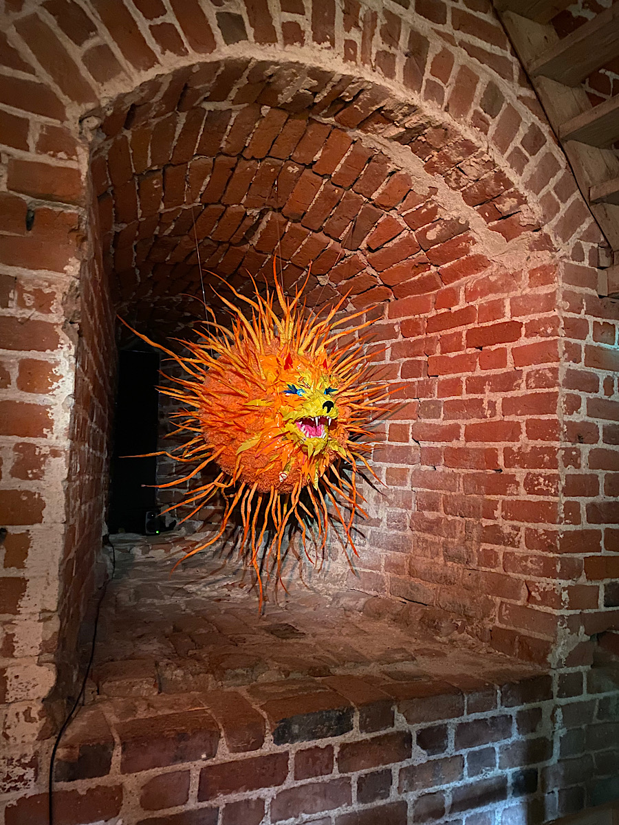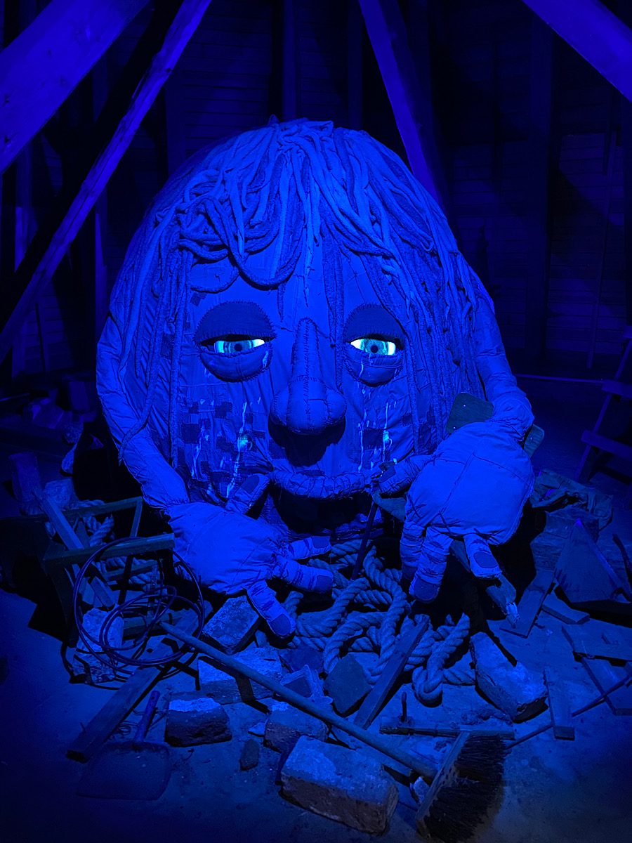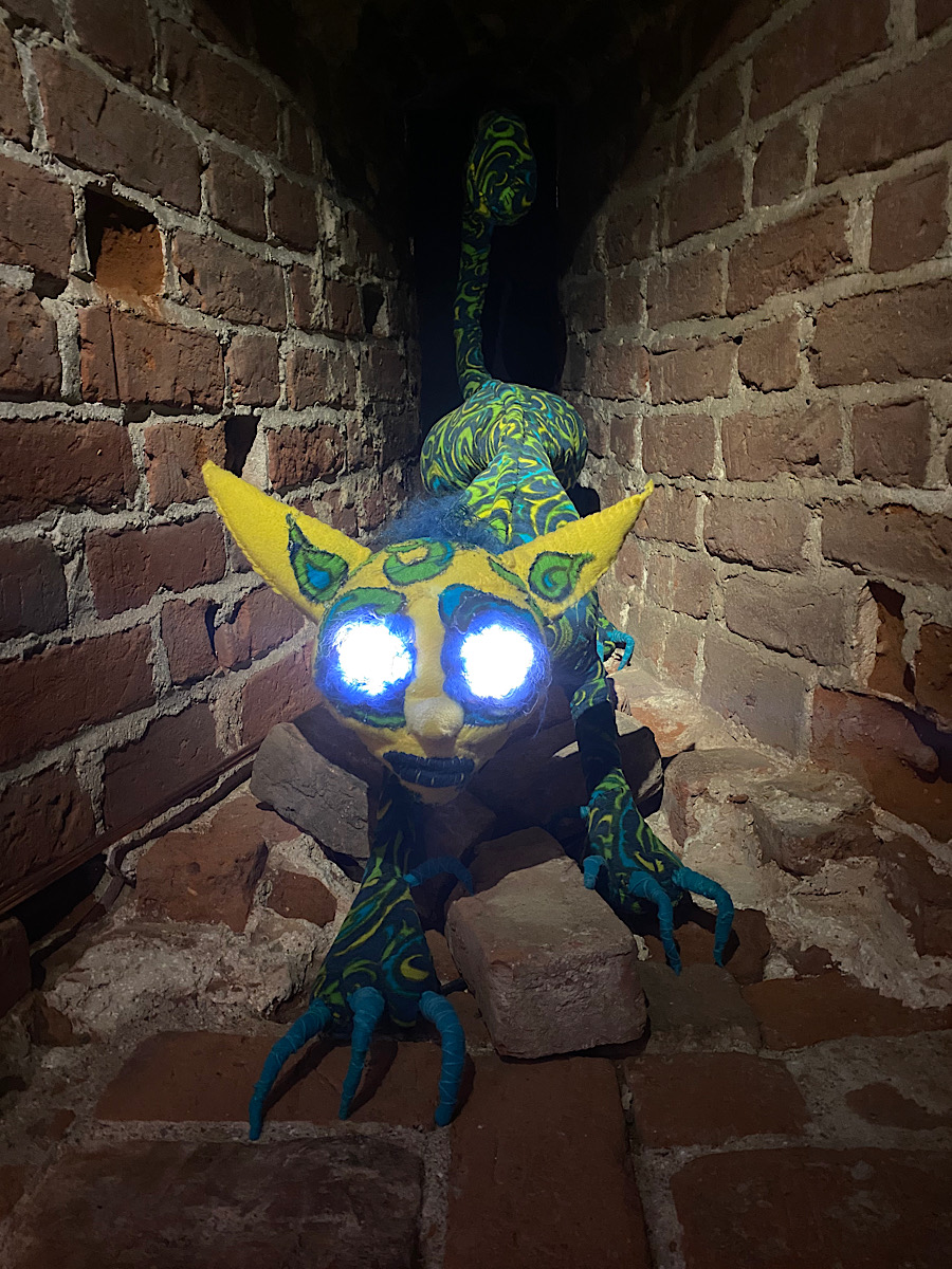 Hela vägen upp i tornet bjöds det på en monsterkavalkad. Så roligt att läsa om de olika monstren och att betrakta hantverket bakom. Jag sa till dottern att hon hade varit livrädd för att gå där då hon var liten och allt var läskigt. Vi såg dock några gossar som verkade tycka att det var precis lagom läskigt. En av dem fick dock spel då han kom ut och det visade sig att han var hemskt höjdrädd. Stackaren! Att bära en femåring nerför rangliga trätrappor kan inte ha varit det roligaste hans mamma gjort. Så ledsen han var…