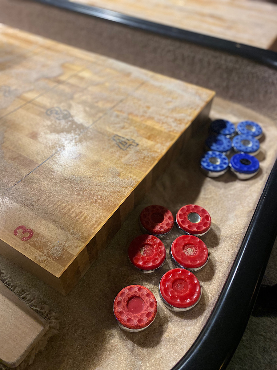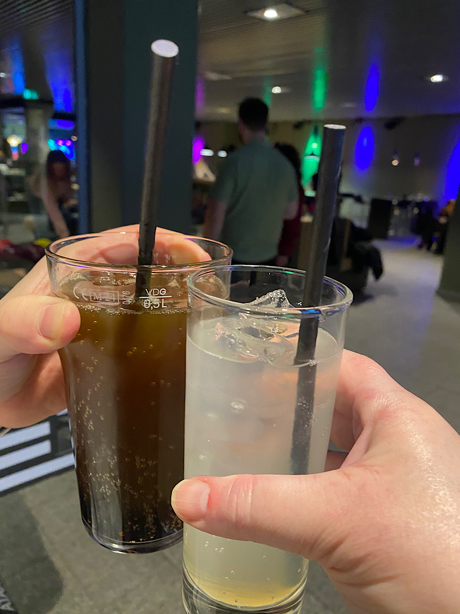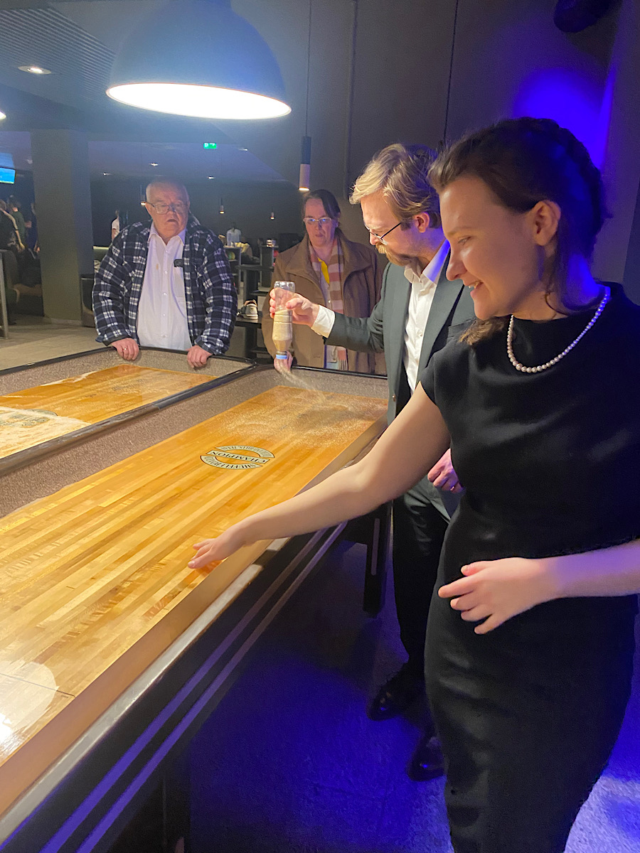 Familjerna med småbarn åkte vidare och vi gamlingar hängde med våra ”barn” till en bowlinghall med liv och rörelse. Där hade svärsonen bokat shuffleboard. Sååå kul. En av mina bästa skolaktiviteter som tonåring var curling. Inte var jag särskilt bra, men jag hade roligt. Shuffleboard är helt enkelt en miniversion där sand minskar på friktionen. Vi körde ”drengene vs. pigerne” en omgång och en omgång ”Sverige vs. Danmark”. Vi tjejer vann stort, men dessvärre gick det inte lika bra för Sverige. En härlig gin fizz mocktail kunde de sno ihop utan problem! Det är verkligen viktigt att leka mer i livet. Att ta ansvar, men samtidigt inte ta sig själv för på stort allvar är nog en bra kombination.