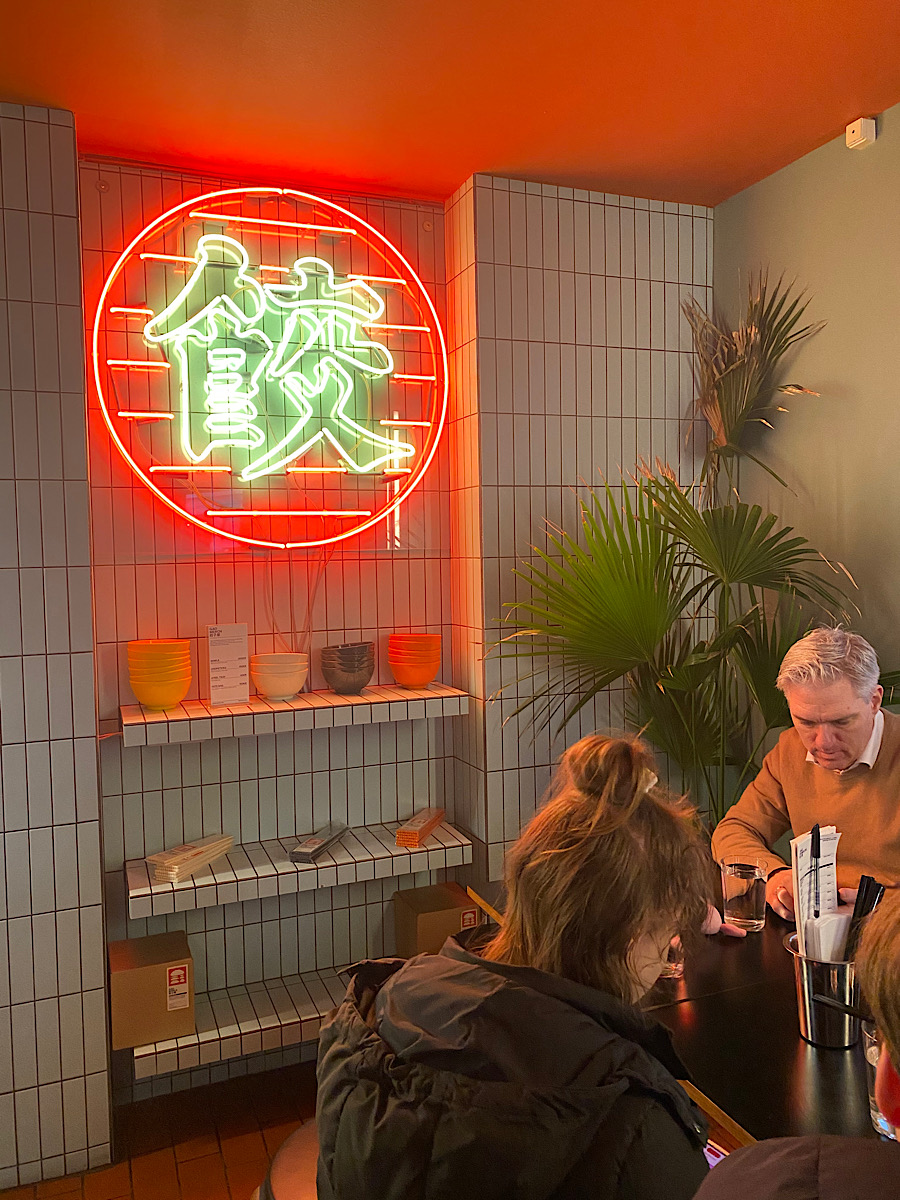 Efter Van Gogh var vi hungriga och drog vidare till Gao Dumpling. Trevligt ställe, prisvärt (utom vattnet som kostade 20 dkk) och mycket gott! Vi beställde en massa från menyn och delade allt. Den översta konstnärliga bilden tog maken när vi hade tryckt i oss allt. Vid det laget var alla mer än mätta och belåtna. Vi for vidare för att möta upp svärsonens familj och en viktig stund för oss. Jag är så glad att vår dotter har en extrafamilj som hon känner sig trygg med. Det betyder mycket.