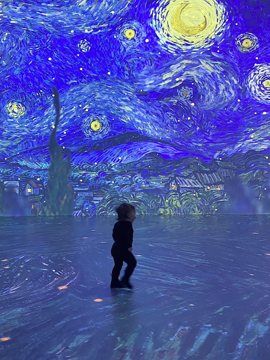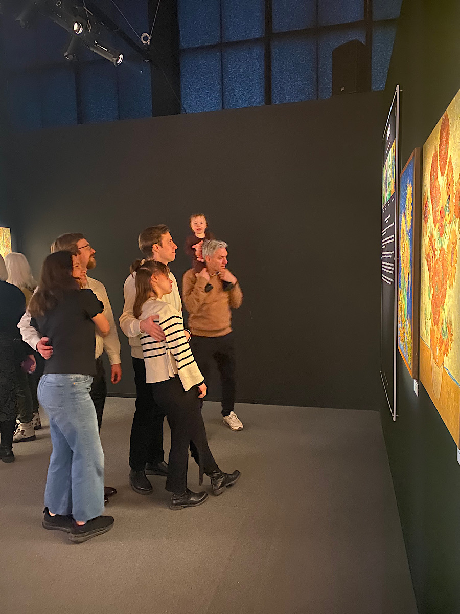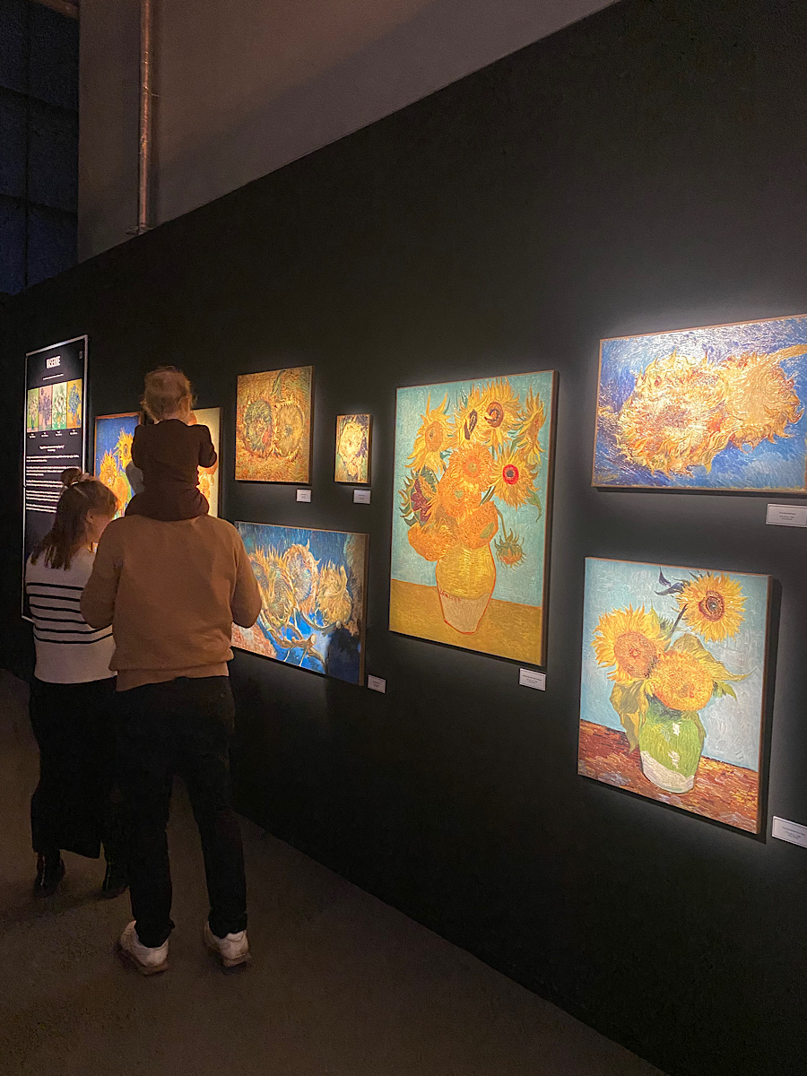 Det går inte att inte tycka något om Van Gogh. Han var med all tydlighet en man med stora känslor och en mental ohälsa som påverkade hans mående mycket. Han var bara 37 år gammal då han tog sitt liv och vid det laget hade han ännu inte hunnit bli känd. Numera finns det dock verk som går för över 20 miljoner dollar. Det finaste jag tog med mig var Van Goghs tankar runt fotografier. Varför sätta upp foton på personer man älskar då ett målat porträtt kan rymma så mycket mer kärlek? I slutet av utställningen kommer den del där man har skapat ett levande konstverk av Van Goghs tavlor med hjälp av ljus, ljud och modern teknik. Alla fascinerades, från ettåringen till 54-åringen. Det här är mycket snyggt gjort. Om du har chansen att gå på någon av dessa utställningar (Monet och Van Gogh har jag varit på, det kommer säkert fler) så gör det!