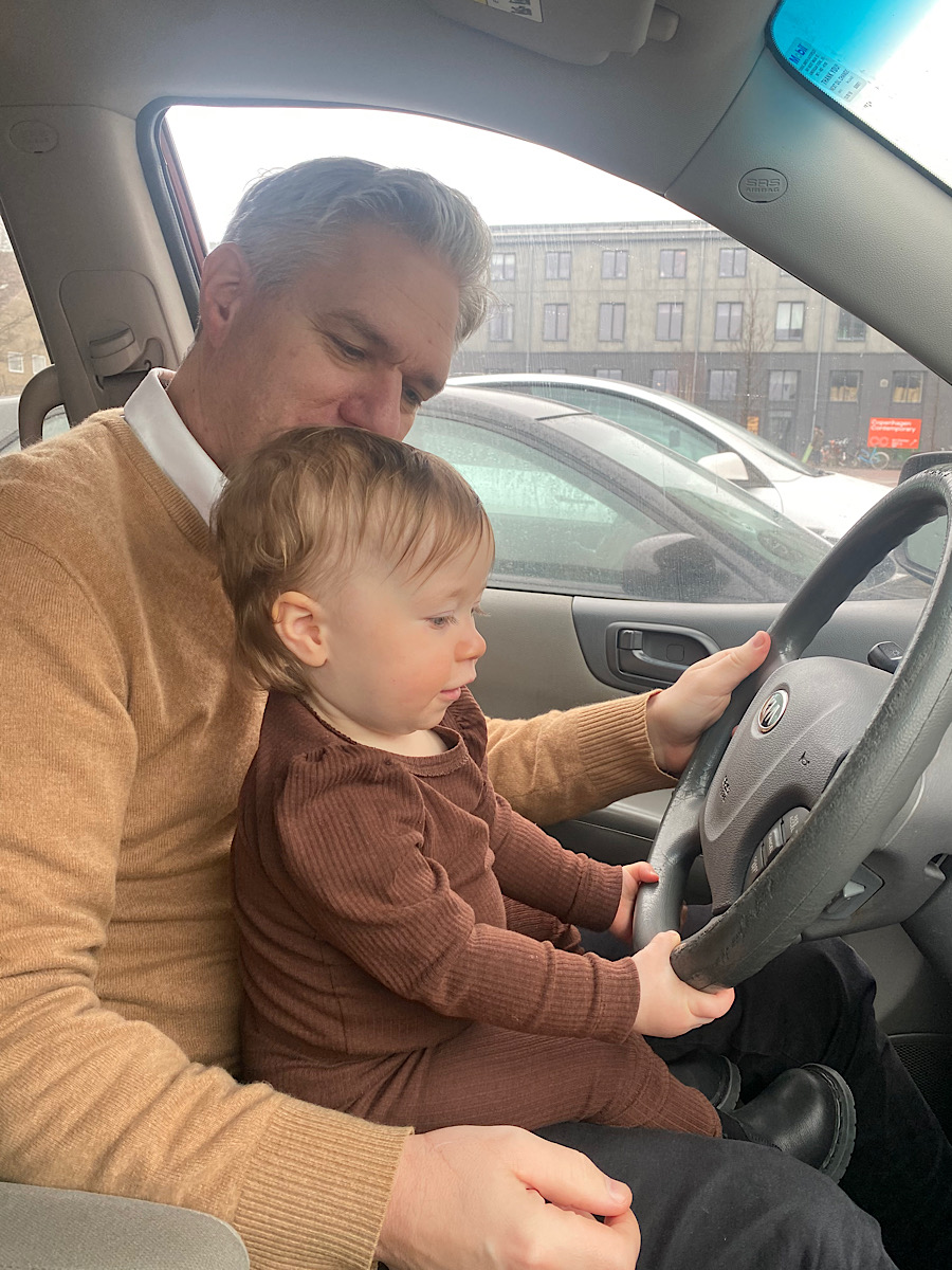I fredags satte vi oss i bilen som var preppad med barnbarnets bilstol och gav oss ut i halkan. Morgonen bjöd på underkylt regn och det hade varnats för dåligt väglag. Jag satt vid ratten och körde mycket försiktigt och med goda avstånd till framförvarande fordon medan maken satt i passagerarsätet och jobbade. Vi stannade på Willys och fyllde på med den bästa inflyttningspresent jag vet, ett storköp med basvaror! Efter det svischade tiden fram i ett disigt och småregnigt landskap medan jag lyssnade på gillade låtar sedan Spotifys begynnelse. Det finns SÅ mycket bra musik! Jag kom dock på att jag borde ha en lista med ”gillade förut-låtar” som jag av någon anledning inte längre ser storheten i. Innan Öresundsbron bytte vi plats och maken fick ta över föraransvaret. Vi mötte upp äldsta dottern och hennes familj på Kastrup och tog en stunds AH och OH med Lillan innan vi for vidare mot Van Gogh-utställningen. Där mötte vår yngsta dotter upp med sin man.