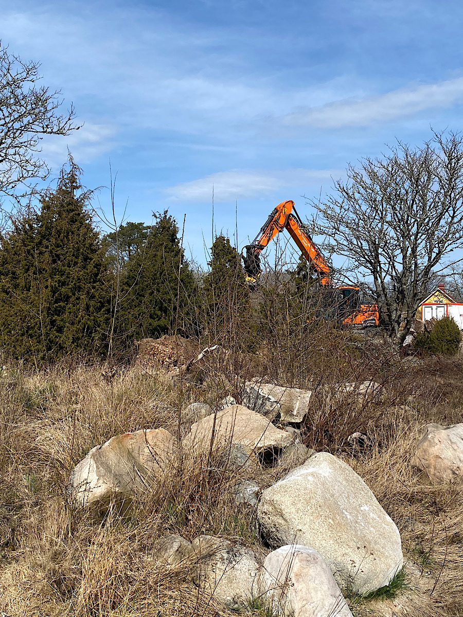 Borta på brorsans tomt var de och sprängde och grävde för att kunna lägga rören till allt det livsnödvändiga för ett modernt boende. Jag var där och inspekterade och passade på att bjuda på ”nybakade” wienerbröd från ICA till de tre fixarna. Tänkte att en fika i den härliga vårsolen mellan sprängningar och grävmaskinsdamm hade suttit bra om de var jag. Maken undrade dock varför jag inte tog med något wienerbröd hem till honom…