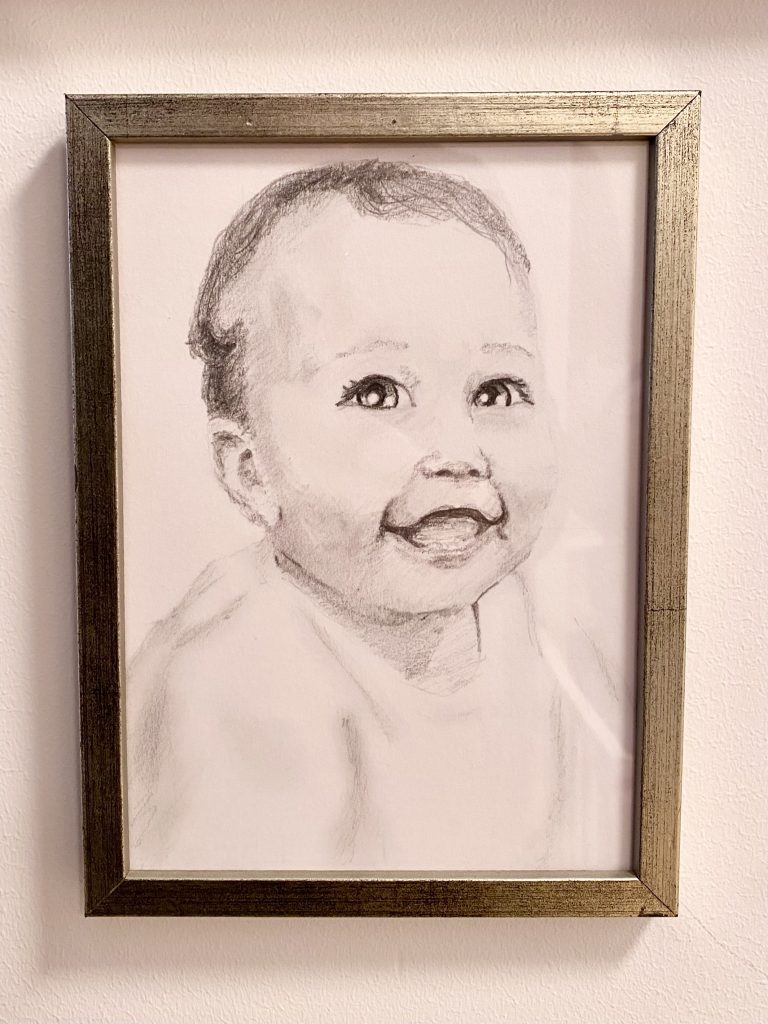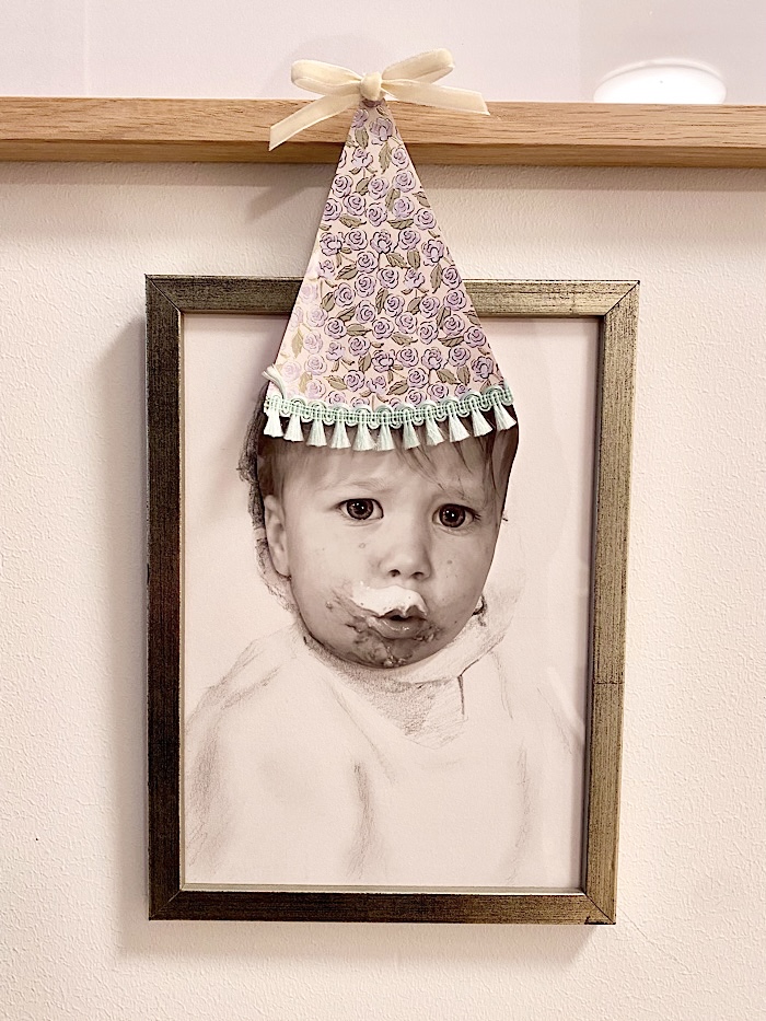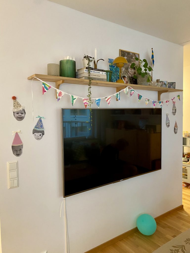 Efter mitt ondgörande av AI tycker jag det är lite extra roligt att visa denna installation gjord av födelsedagsbarnets pappa. Det är han som tecknat det fantastiska porträttet och att sätta ett av födelsedagsporträtten över ansiktet på tavlan var sååå roligt. En trollerikonst som är uppenbart och självklart fejk, något som bevisligen är gjort för att roa och få folk att titta fler än en gång. Det är helt enkelt skillnad på lurendrejeri och lurendrejeri.