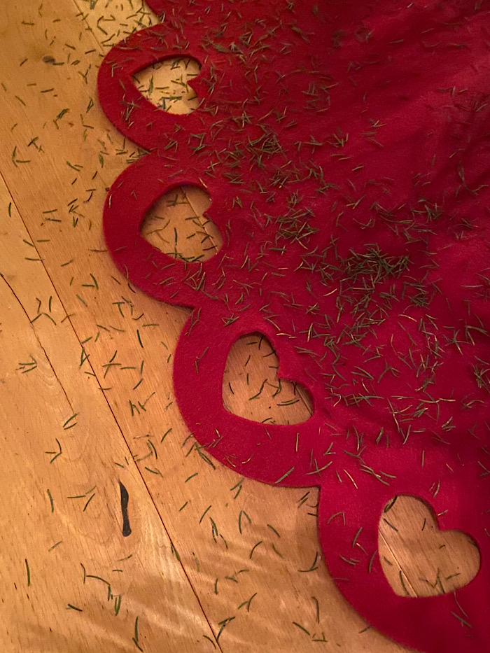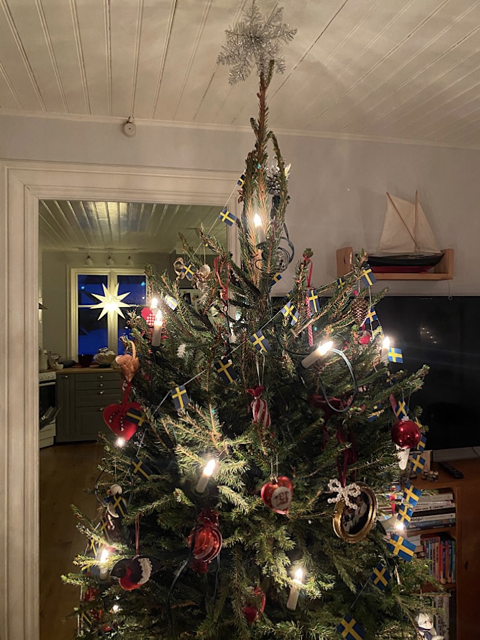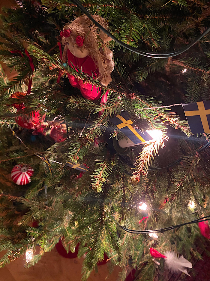 Några av våra vänner i USA som numera är skilda lät sin (plast)gran stå kvar in i februari, men klädde om den med hjärtan och blommor för att fira Valentine’s och födelsedagarna i februari. Jag vet inte om jag hade velat ha granen stående så länge, även om vi hade haft ett större hus och därmed inte påverkats lika mycket av en stor gran i vardagsrummet.