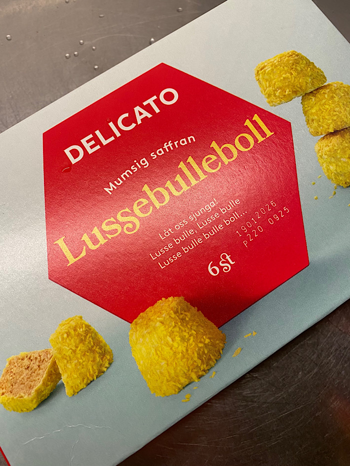 För övrigt kan jag meddela att Delicato faktiskt har lyckats tillverka en ny boll som är riktigt god. Maken hade köpt hem dessa till oss. Mina förväntningar var extremt låga. Tänk bara alla ”juleskumsspecialare” som Cloetta (?) lanserar varje år istället för att bara nöja sig med att tillverka de vanliga tomtarna som faktiskt smakar bra. Döm om min förvåning då dessa smakade jättegott. Det bästa lussebullsalternativ jag hittat så här långt har varit saffranskladdkaka, men detta var alltså inte alls dumt. Vad är det influerare brukar ropa? LÖP O KÖP! Dessbättre kan jag lova att jag inte har något endaste litet samarbete. Att jag sedan vurmar extra för Delicato vars fabrik ligger så nära Segeltorpsskolan där jag jobbade att man kunde mötas av ljuva bageridofter då man kom till jobbet om morgnarna är något annat. ”Lokalt tillverkat” kan väl gälla också mentalt?