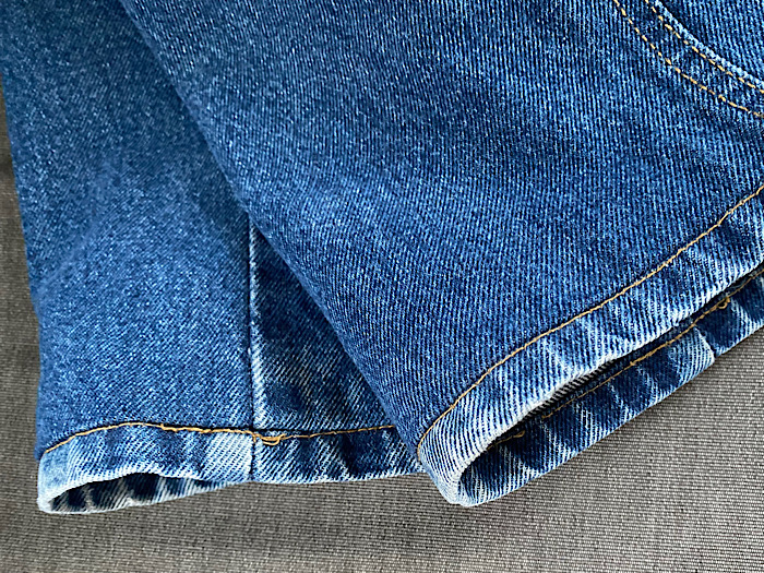 För ett tag sedan fick maken ett par arvejeans. Jättesnygga, men för långa. Han tycker de är jättesköna och har haft på sig dem flera gånger, uppvikta på ett sätt som inte har något med mode att göra. Alltså, jag har inget principiellt emot uppvik, men nä, det här var inte snyggt. Eftersom jag visste att det bara var av praktiska orsaker och att maken skulle fortsätta ha på sig de där jeansen pga SKÖNA så fick jag ta itu med problemet för att slippa få ögonskav. Jag har naturligtvis fållat kjolar, byxor och skjortor massor av gånger, men jeans är speciella. Om man lägger upp ett par bara genom att vika upp byxbenet så förloras mycket av jeanskänslan. De flesta jeans är tvättade för att få sin karaktäristiska look och tvätten ger avtryck också i fållen. Nu bestämde jag mig för att leta upp en YouTube-video jag hade sparat just gällande hur man kan lösa detta problem. Håll tillgodo! Jag slipper reta mig och maken gillar den nya längden.