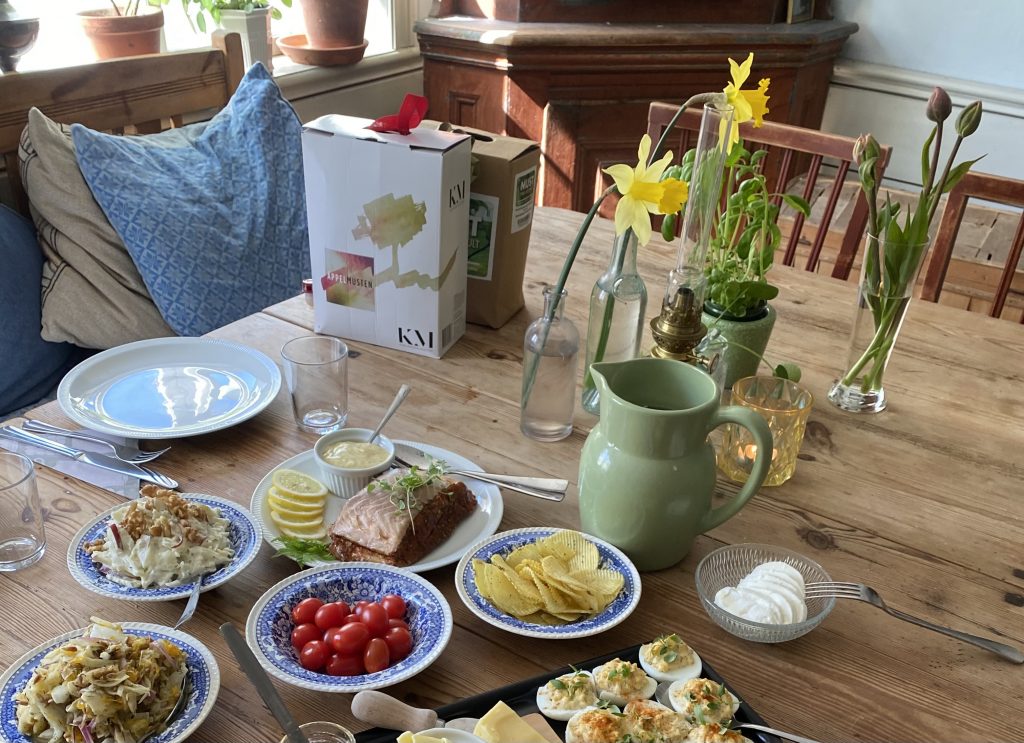Apropå syrran, jag frågade om vi kunde komma förbi efter kyrkan och ta med lite överbliven kirskålspaj och sallad, kanske hjälpa till lite inför ovan nämnda gossars inflytt. Det tyckte hon lät jättekul och så dukade hon upp värsta buffén. Så gott det var och inte minst vackert. Man äter inte bara med munnen, utan också med ögonen. Jag kan också tala om att osten Biskop Brännvin som har fått stå framme en stund kan vara min favoritost någonsin. Eller iallafall igår. Så god med lite smör och finncrisp! Efter det skulle syrran och maken jobba lite tillsammans, men jag tog en rask promenad till Amiralitetskyrkan där…