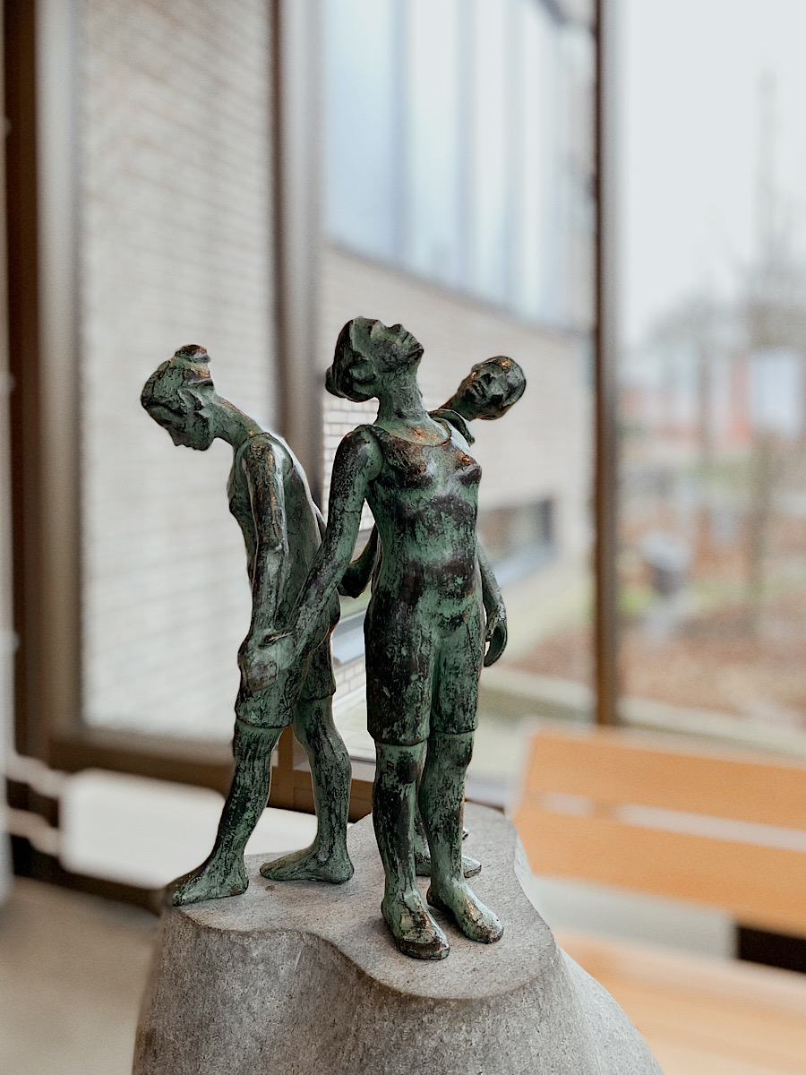 Jag hade varit inne i byggnad 28 och gick in i 46:an för att hälsa på de underbara akrobaterna där inne. Karlskronas vackraste allmänna konst? Dessa små figurer klättrar sig upp och finns i hela detta trapphus och gör mig så glad!