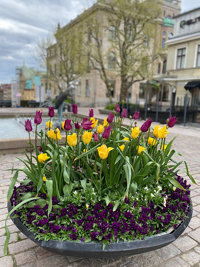 Jag försöker få grejer gjorda med lilla 1,5-åringen här hemma, men det går lite långsamt. Jag ligger efter hela tiden, men njuter ändå av hur det växer och lever runtomkring mig. Jag njuter inte bara då det händer grejer här hemma, utan också att jag ser blomsterprakt på annat håll. Syrenerna börjar slå ut. Såg bilder från Söderköping på utslagna syrener hos Anna och tänkte att vi VERKLIGEN bor i ett blåshål. Här närmar vi oss nämligen bara det utslagna. Det är vinden som är den stora utmaningen i vår trädgård. Får försöka skapa bättre rum kanske? Jag önskar att jag hade en lövblås, för markduken i tomatkuvösen gick inte att borsta ren från förmultnade lönnlöv från grannarnas makalösa träd. (Trädet ska tydligen bort snart och jag gråter redan över hur jag kommer att sakna höstarnas bästa utsikt från köksfönstret.) Titti och jag matchar sorgränder under naglarna, men inte sörjer vi. Det är roligt att ha fingrarna i jorden tycker vi båda.