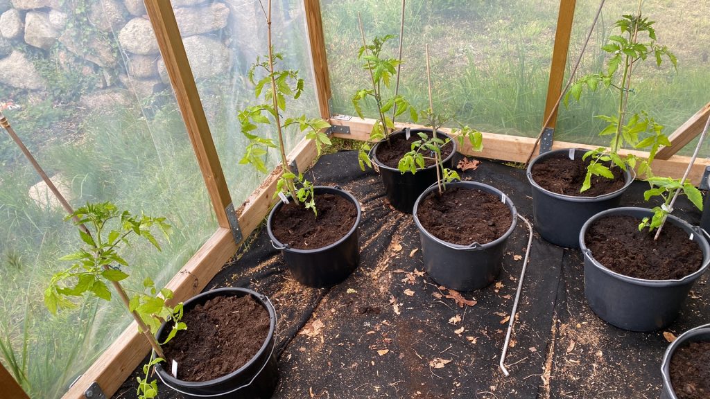 Imorgon flyttar jag ner gyllenbär, chili och paprika till växthuset. Det var skönt att stå i tomatkuvösen och få ner plantorna i slutdestinationen, varsin murarhink, för ute blåste det med byar på 20 m/s. Inte undra på att tomaterna växte så bra förra året efter att ha fått skydd både uppifrån och från sidorna. Sniglarna har tuggat i sig en hel planta plymspirea (fick av min svägerska förra året) och en vallmo som jag vårdat ömt. Kommer någon av dem igen? Vet ej, men perennrabatten har nu fula ölfällor överallt (enliters mjölkkartonger med öl i) för att locka till sig marodörerna. Tror du jag lyckas bättre med bekämpningen i år?!