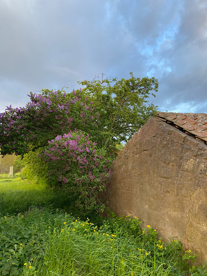 Varje år tänker jag ”efter blomningen ska vi beskära vår syren bakom huset”. Jag har hunnit tänka tanken från och till sedan våren 2017, så nu är det kanske dags att göra slag i saken. Syrenträdet ger en frodig blomsterprakt, men den befinner sig väldigt högt uppe och jag vill ha blommorna närmare min näsa då jag uppehåller mig i närheten. (För övrigt är denna baksida en riktig dump med ogräs som skulle kunna bli jättemysig. Senare projekt dock. Vi kan inte ens göra det hjälpligt snyggt. Tyvärr lät cykelverksta’n hälsa att röjsågen/trimmern inte blir klar förrän om flera veckor, gah.)