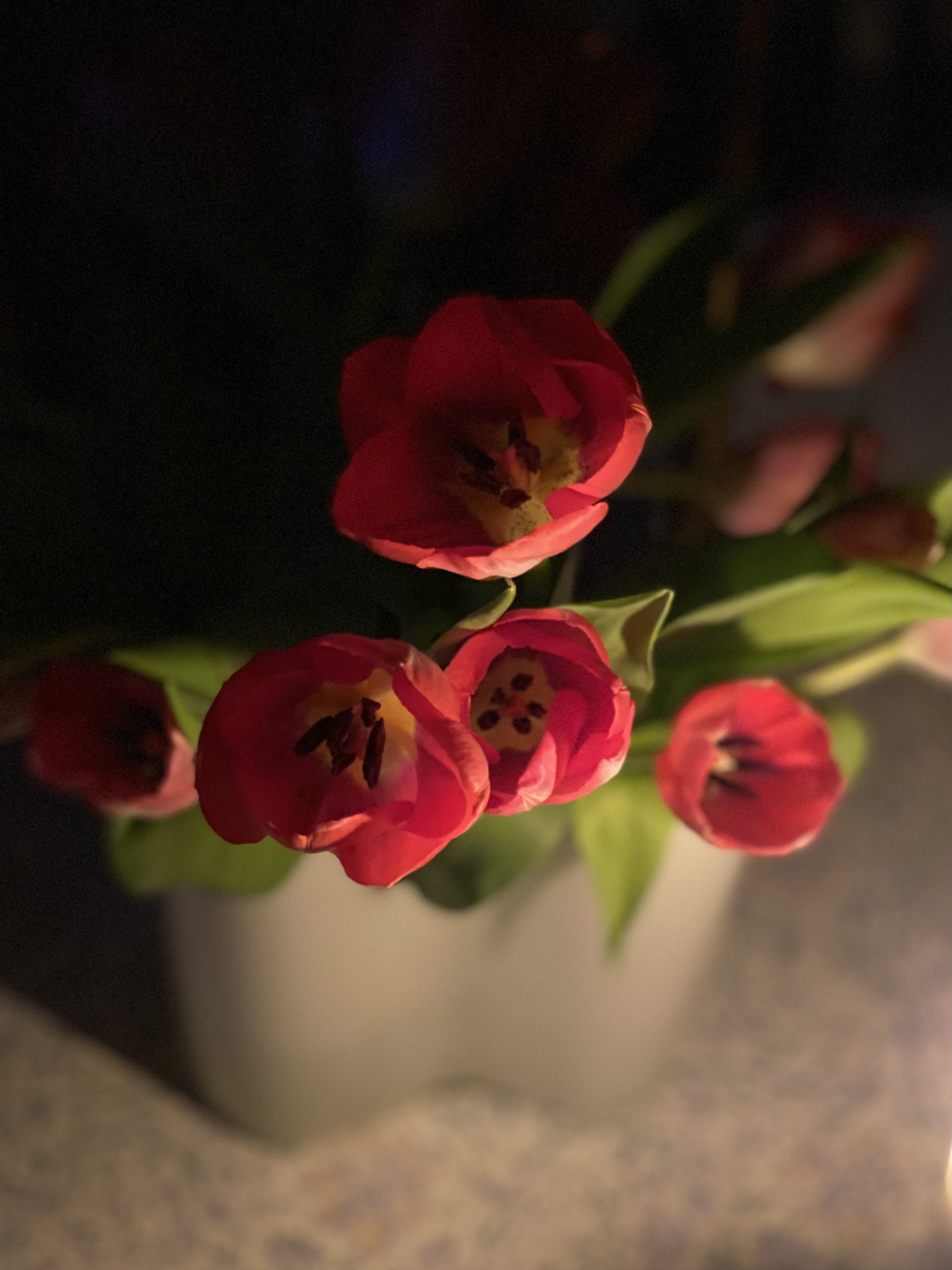 Jag har inte ett enda aprilskämt att dra till med, utan fröjdas istället åt mina fantastiska tulpaner. De får stå i verandan över natten eftersom kylan ger dem ett längre liv. Jag vet att jag kommer att kunna plocka in åtminstone en bukett vad det lider av mina egna tulpaner, men dessa köpte jag via ”Too good to go”-appen. Hoppas att de står över påsken, eller åtminstone i några dagar. Idag ska det städas och grävas och rensas och bäddas och ikväll kommer yngsta dottern och hennes man för att stanna i några dagar. Mysigt! Verandagolvet ska såpskuras och solen ska njutas av. Jag ska även ta mig till kyrkogården och göra lite påskfint på gravarna. Sedan tar jag påsksemester! Vi ses här när vi ses. Hoppas att du får fina dagar tills dess.