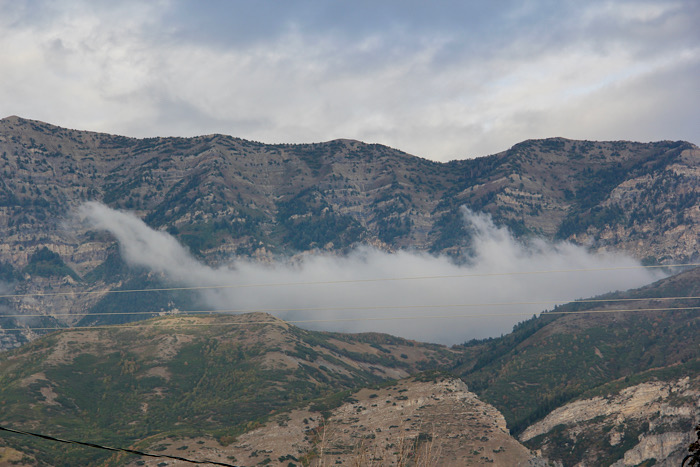 För mig är detta Squaw Peak, men sedan 2022 heter den Kyhv Peak (kajv pik). Kyhv är Ute-folkets namn på berg. Det var denna topp vi såg till höger i utsikten från vårt hus. För mig som alltid gillat Klippiga Bergen var det roligt att vi faktiskt fick bo bara några kilometer därifrån. Denna del av bergskedjan, Wasatch Mountains, är ju inte särskilt klippig… Däremot är den 260 km lång. Imponerande!