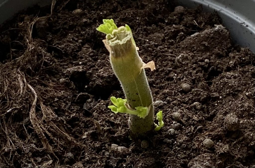 Jag kapar vanligtvis mina pelargoner rejält innan jag ger dem lite ny jord och sätter dem ljust för att orka sätta nya blad och vakna till liv för den nya säsongen. Jag hoppas att jag blev av med de kålfjärilslarver som låg så fint i några av krukorna, några vuxna larver verkar i alla fall inte finnas kvar. Varje gång jag ser de bara några centimeter höga ”pelargonpinnarna” sticka upp ur krukjorden tänker jag ”nej, nu skar jag nog för hårt”, men nästan varje gång händer precis det du ser på bilden här ovan. De nya bladen trycker på, strävar mot ljuset, visar livslust och livskraft. Det är så fint. Mina växter både ute och inne är på något vis som mina barn. De heter Mamma, Karumo, Maggan, Bagitta, Malin, Sven-Erik och Kerstin, Eva, Ella, Karin, Maiken, Vajlan, KP, Hans och Sara, Mia, Linda, Gumbritt, Peter, Anita, Mimmi, Johanna och allt vad det är (förlåt om du som läser bidragit och inte står med i listan). För somliga är det rimligt att ge rabatter och hemmets inredning nya färgställningar och uttryck varje år eller mer ofta än så, för mig är anknytningen till personerna som bidragit till det som växer här otroligt viktig. Får jag en växt som jag inte älskar än ser jag till att ge den rätt förutsättningar för att kunna visa sig från sin bästa sida. Ibland överlever dessa gröna gåvor inte trots min omsorg, men då får det vara så. Jag fick ärva ett gäng av mammas krukväxter. Orkidéerna dog i spinn för några år sedan och två av de tre pelargonerna finns inte kvar hos mig. Jag har gett bort sticklingar av mammas pelargoner till ett gäng personer, så förhoppningsvis lever de vidare någon annanstans! Jag har ett exemplar kvar, en lite klen rosa sak som aldrig blir särskilt stor, men jag vårdar henne så gott jag kan. Garderobsblomman som stod i trappan upp till övervåningen står nu på hyllan vid trappan på vår övervåning, norrläge, och mår fantastiskt bra! Sätter tre nya ”grenar” varje vår och håller sig fin med lite ny näring ibland och ett besök i duschen då och då. Jaha, det blev en uppsats om min konstiga anknytning till växter som jag får från andra.